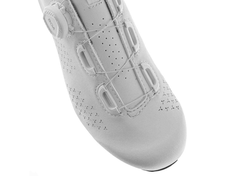 3687-004 G.SPRINT+ LADY je dámská silniční cyklistická obuv vyvinutá tak, aby odpovídala specifické anatomii ženské nohy. Má elegantnější linie a poskytuje jak výkon, tak pohodlí. Mikrovláknový materiál je perforovaný, aby optimalizoval prodyšnost a zlepšil větrání, takže vaše nohy zůstanou během jízdy v suchu a chladu. Uvnitř je obuv doplněna síťovinou, která poskytuje trvalou oporu nohy a zvyšuje stabilitu. Systém zapínání vybavený mikro-nastavitelným BOA L6 zajišťuje rovnoměrné a bezpečné zapínání bez jakýchkoli tlakových bodů. FIT TONGUE 1.0 je bezešvý jazyk, který obsahuje high-tech polstrovací vrstvu pro zvýšený komfort a prodyšnost. Integrovaná protiskluzová pata zvyšuje stabilitu a kontrolu chodidla pro lepší zážitek z jízdy. Vložka EPS TRANSPIRANT INSOLE, anatomická podpora pro pohodlí a efektivitu šlapání. GAERNE EPS CARBON POWER SOLE 8.0, vyrobená z nylonu obohaceného uhlíkem pro zvýšenou tuhost. Její tenký profil umožňuje efektivní šlapání bez rozptylu energie, zatímco tvar plantární klenby zvyšuje stabilitu chodidla. Strategicky umístěné větrací otvory a vnitřní kanálky zajišťují vynikající ventilaci. Protiskluzové gumové segmenty v přední a zadní části zajišťují bezpečnou chůzi, přičemž zadní segment je vyměnitelný. Podešev je kompatibilní se všemi nášlapnými pedály a pyšní se indexem tuhosti 8. G.SPRINT+ LADY je hrdě vyroben v Itálii.