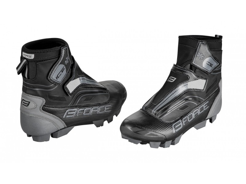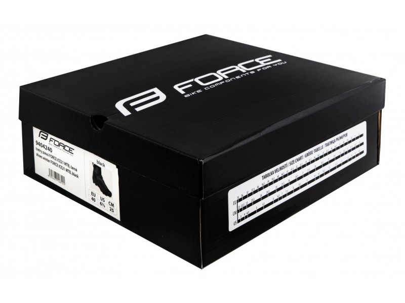 Podrážka: nylonový kompozit index tuhosti: 6 hmotnosť: 485 g (1/2 páru veľ. 42) zapínanie na šnúrky zosilnená päta a špička špička chránená gumovým okrajom proti oderu vodoodolný neoprénový materiál zapínanie chránené vodoodolným zipsom a suchým zipsom jazyk zateplená vnútorná časťanatomická zateplená stielka vnútorná časť z protišmykového materiálu SPD kompatibilné reflexné prvky vymeniteľné hroty s kľúčom súčasťou balenia možnosť dokúpiť náhradné hroty zarážky nie sú súčasťou balenia veľkosť zodpovedá štandardu civilnej obuvi balené v krabici FORCE
