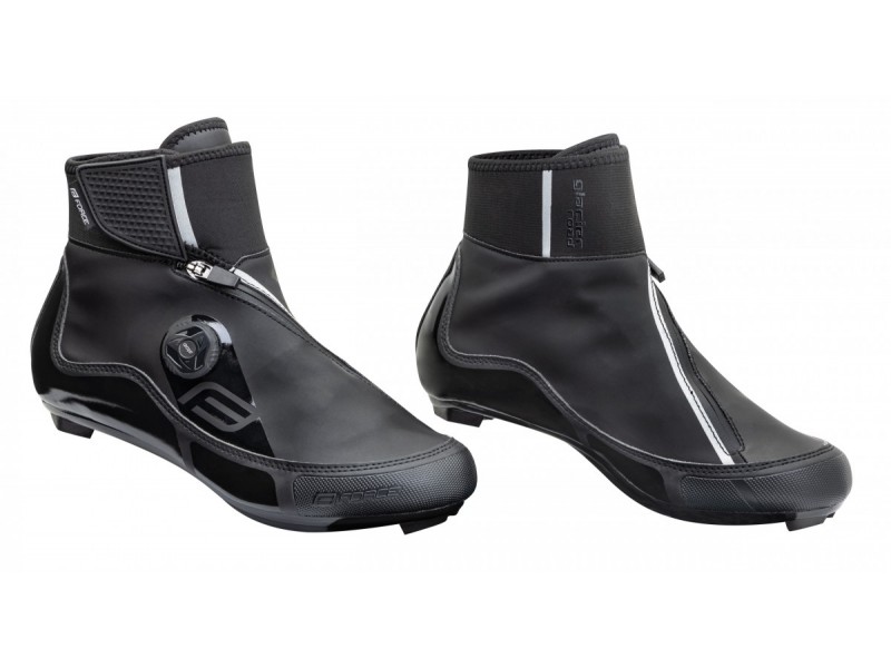 podrážka: nylonový kompozit index tuhosti: 6 hmotnosť: 355 g (1/2 páru veľkosť: 6) 42) zapínanie s kolieskom ATOP A-A41 a suchým zipsom zosilnená päta a špička určená pre teploty od -5 °C do +5 °C špička chránená gumovým okrajom proti kopytu vodotesný neoprénový materiál zapínanie chránenévodotesným zipsom zateplená vnútorná časť anatomická zateplená stielka vnútorná časť z protišmykového materiálu VZDUCH, Kompatibilné s SPD-SL reflexné prvky možnosť dokúpenia náhradných koliesok zarážky nie sú súčasťou balenia veľkosť zodpovedá štandardu civilnej obuvi balené v krabici FORCE
